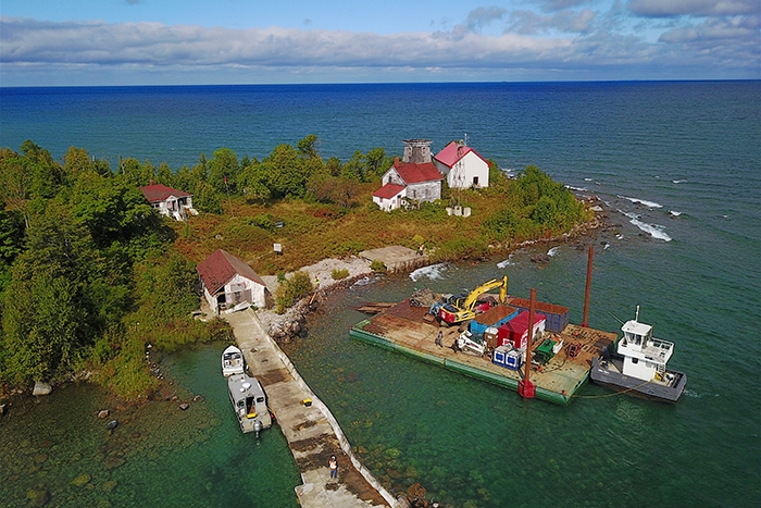 Located in the southeastern region of Georgian Bay, Hope Island is part of a trio of islands belonging to the Chippewa Nation. The old lighthouse was build in 1884, but fell into disrepair once automated steel light towers were installed.