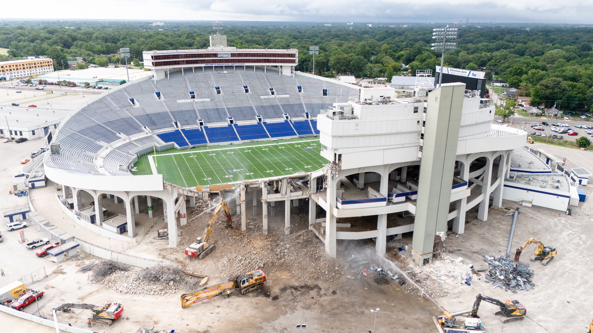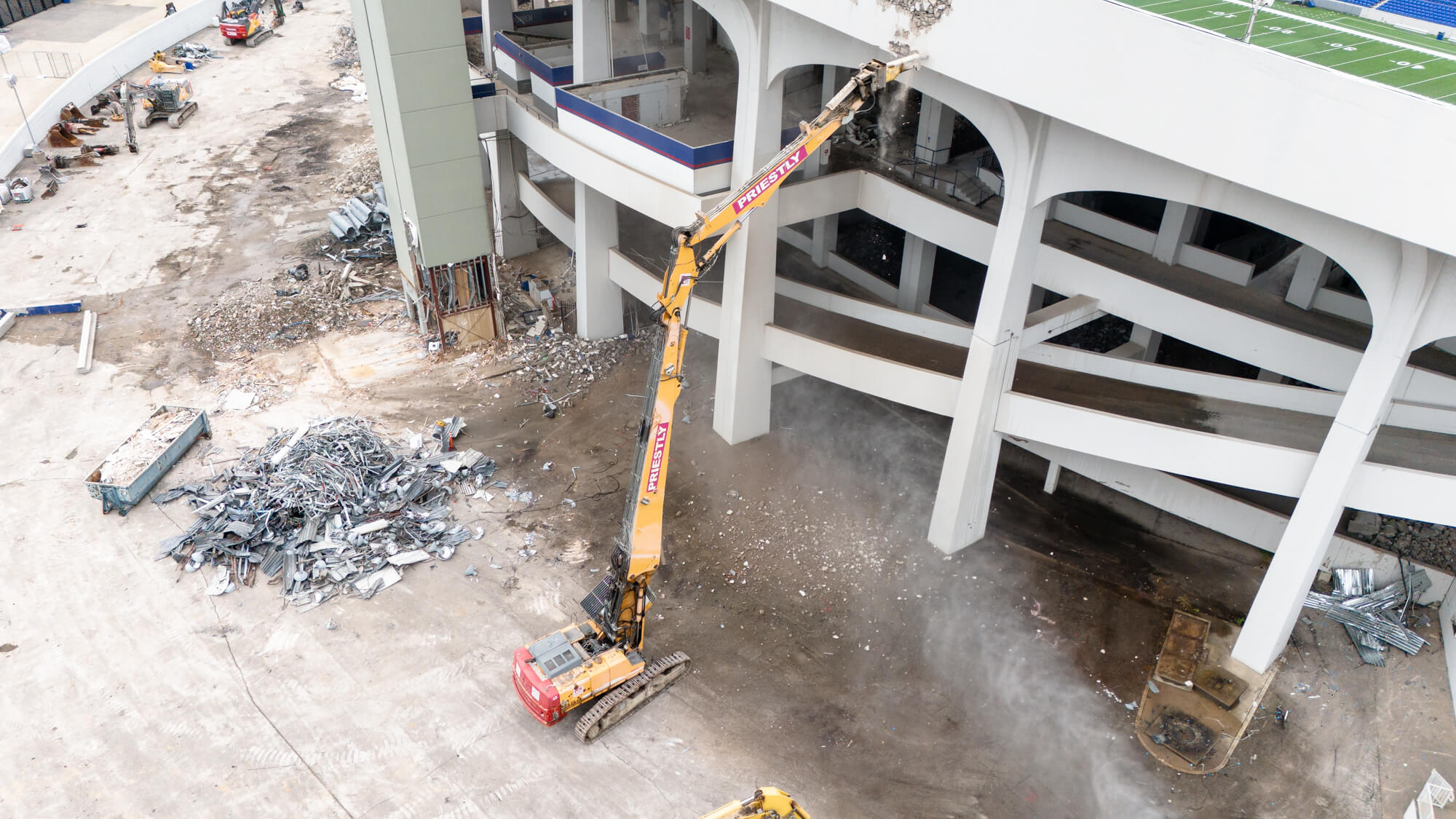 Phase 1 work at the Simmons Bank Liberty Stadium in Memphis Tennessee was completed in time for the 2024 football season. PDI came in with the high reach excavators for the structural demolition after Tiny’s had completed in the interior work. Part of the stadium including the media tower was demolished with our expert team of operators and labourers.