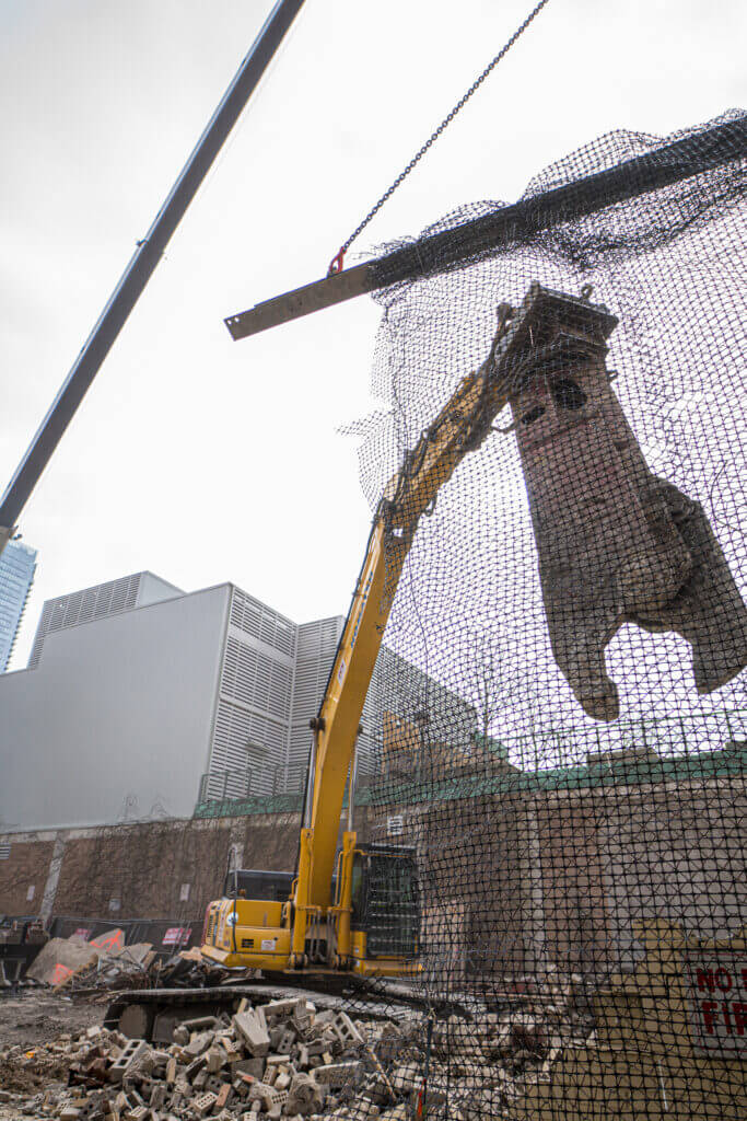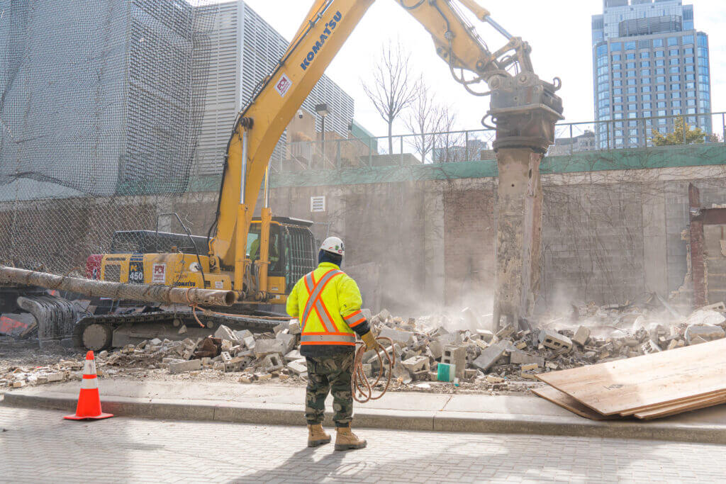 The goal of the project was to demolish the entire 9-storey building down to grade level and remove all below grade elements such as the footings and foundations. Once all concrete was removed, the empty basement had to be backfilled.