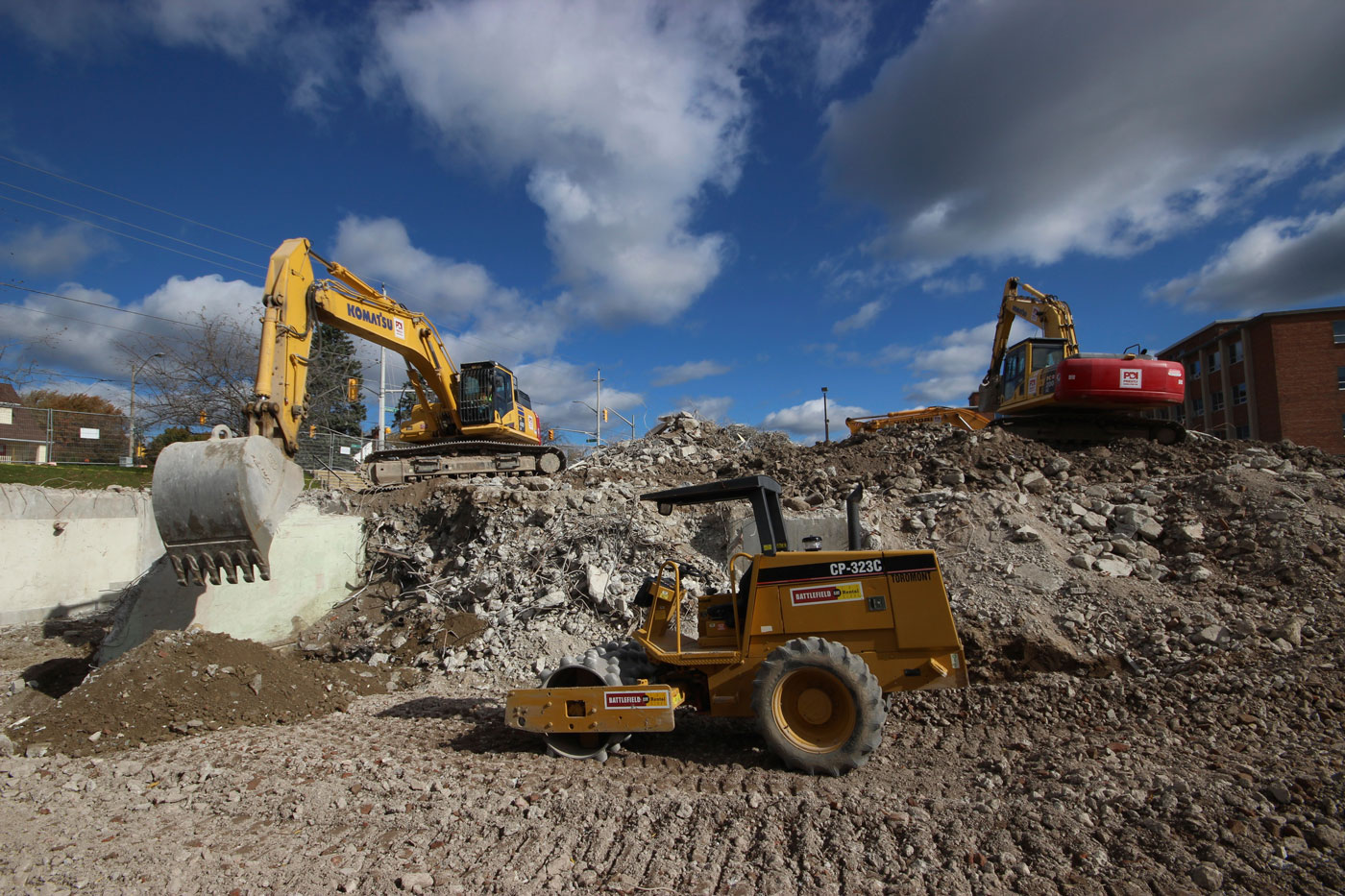 The Edith Cavell Building was originally a nursing school in the 1970s and later transitioned to medical offices. The building had two main sections: a three-storey wing and a six-storey wing that was once a residence for nursing students. The demolition project began with an interior demolition and salvage operation, then proceeded to remove the three-storey section, and finally the six-storey section.
