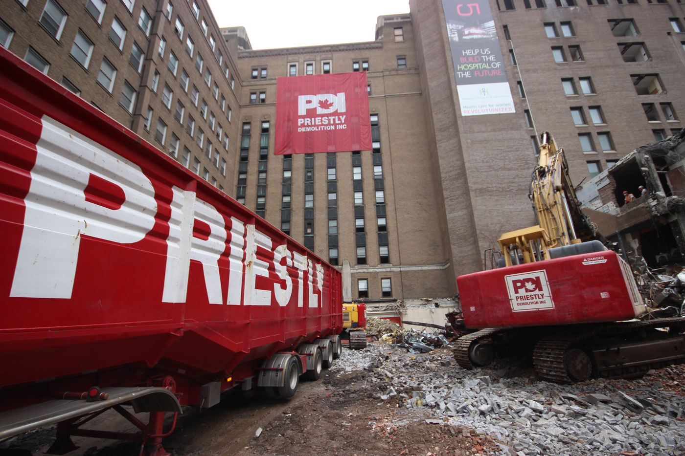 This project required the preservation of key historical elements from the old building and extensive asbestos remediation. Women’s College Hospital was the first institution in Canada to specialize in medical education specifically for women. In 2006, it received a new mandate, and plans began for a new hospital complex on the same site. By 2013, the first new building was complete, and it was time for the old to come down so that redevelopment could continue.