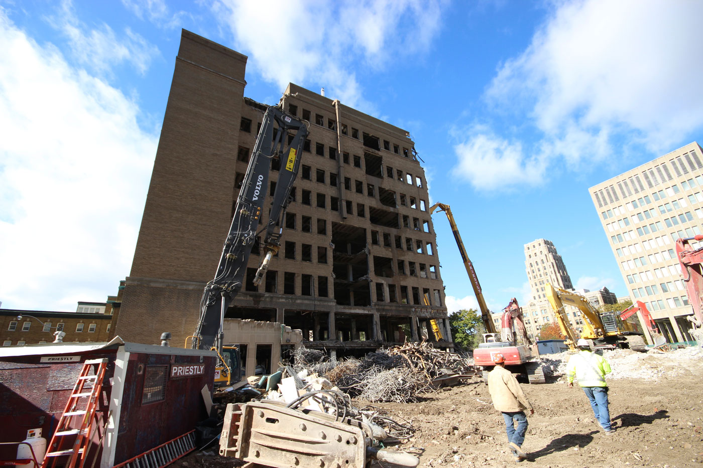 With only six feet between the old and new facilities, a massive “iron curtain” was constructed to protect the new hospital and water was sprayed continuously to keep dust down and air quality up. Despite the unique requirements, Priestly completed the project on time and the next stage in the history of this renowned facility began on schedule.