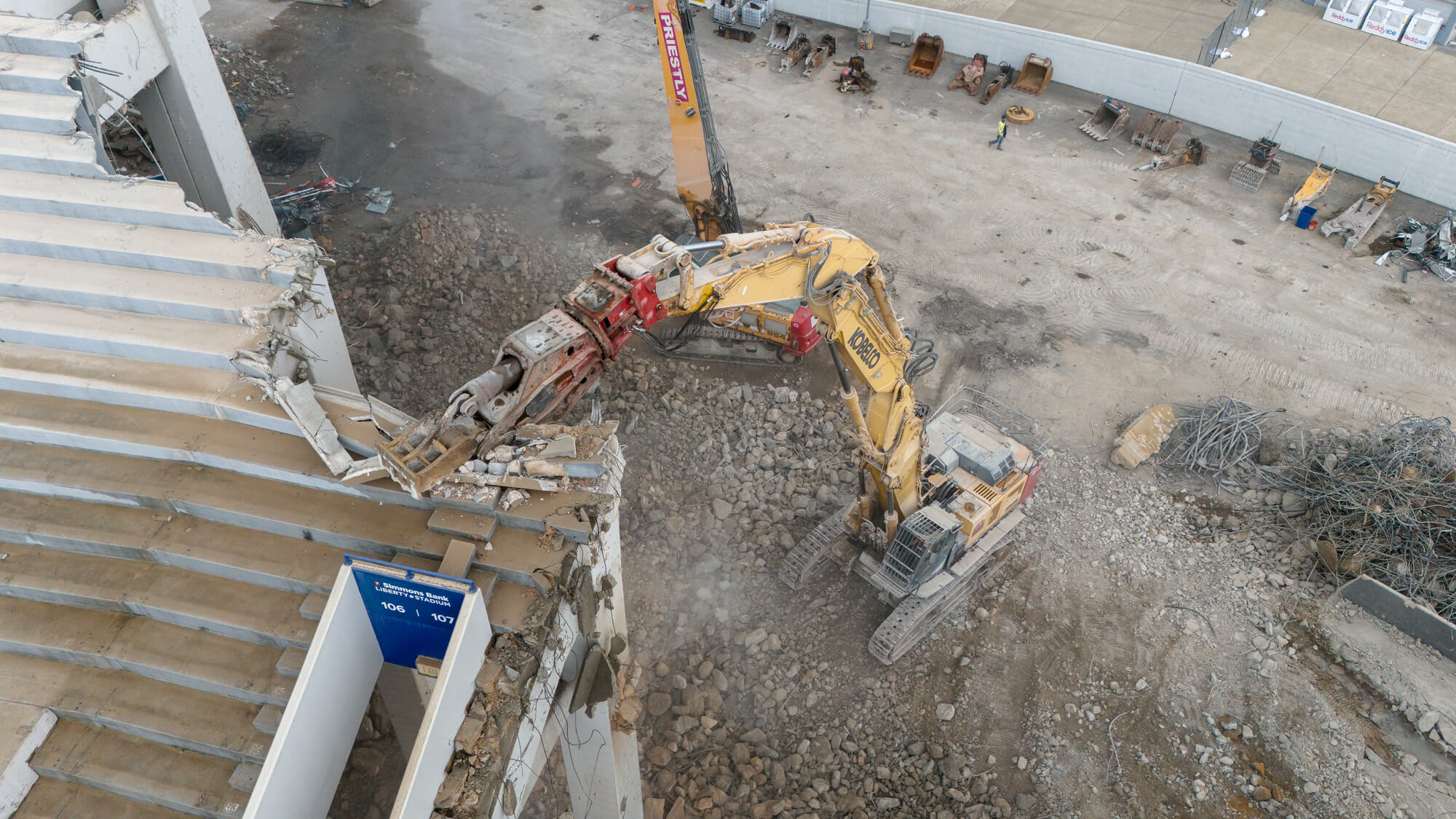 Phase 1 work at the Simmons Bank Liberty Stadium in Memphis Tennessee was completed in time for the 2024 football season. PDI came in with the high reach excavators for the structural demolition after Tiny’s had completed in the interior work. Part of the stadium including the media tower was demolished with our expert team of operators and labourers.